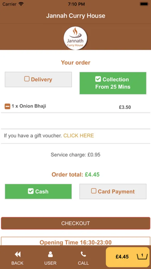 Welcome to jannath curry house. we can cater to vegetarians. we open 7 days a week including a public holiday from 4.30 pm-11.00 pm. delivery available, charges start from £2 will be applied. you can place an order at the opening time.