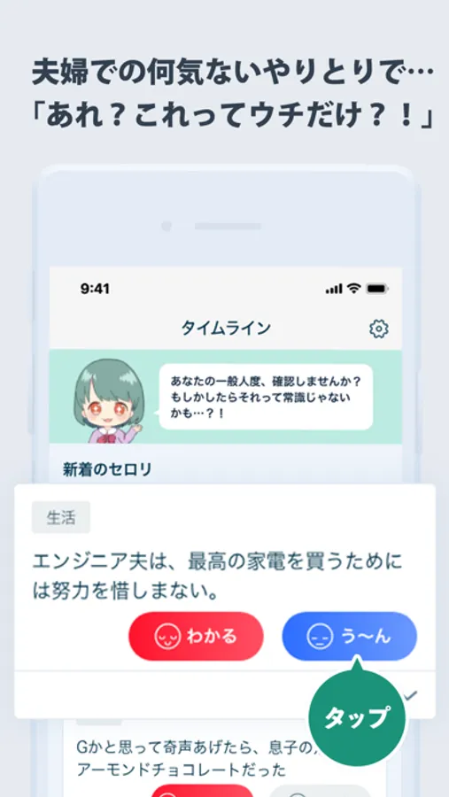 すぐに「わかる」「う〜ん」で反応してくれて、あなたの価値観がどれだけみんなと近いかどうかがすぐにわかりますよ!