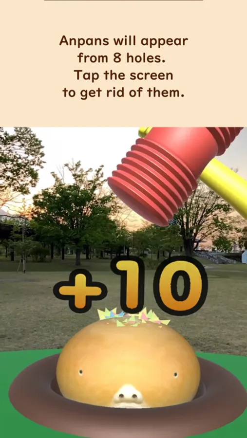 Tap to hit the Anpan as they pop out of the 8 holes, you will get 10 points for each hit, and if you can hit them within 1 second you will get 30 points. You can get 10 points for each tap and 30 points if you can tap within 1 second. The time limit is extended by clearing the scores according to the level.