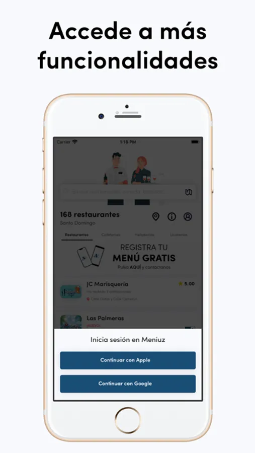 Accede a más funcionalidades cuando inicies sesión para poder agregar tus menús a favoritos y calificar el negocio.