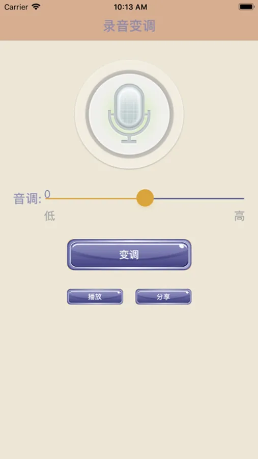 4.变调成功后,点击“播放”按钮可播放变调后的音频。点击“分享”按钮可分享音频。