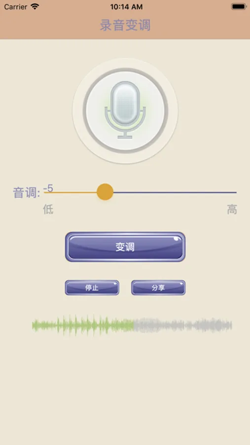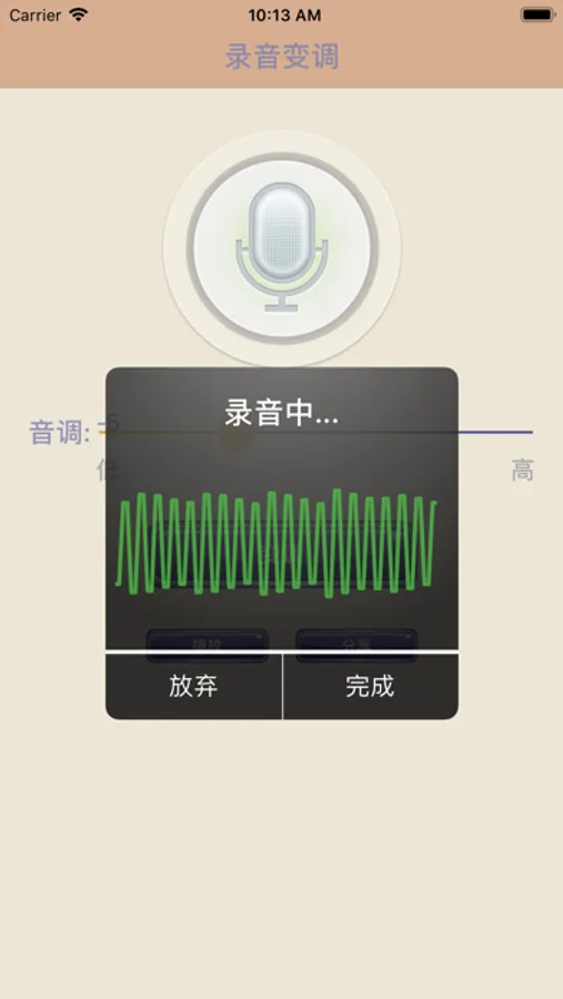 录音并对声音进行变调处理。可将声调调高调低,声音变粗变细。