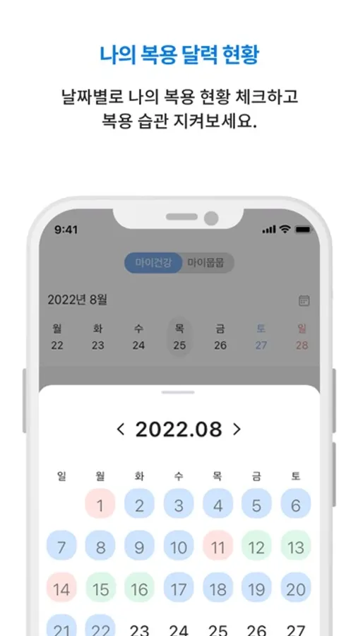 하루 하루 나의 습관을 체크해 꾸준한 복용 습관 유지해요.