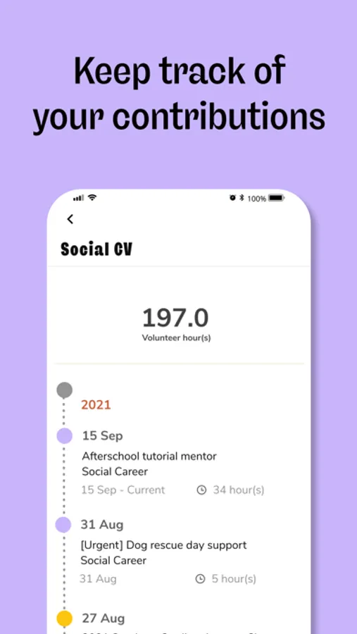 Track your applied jobs, upcoming activities and volunteer hours with a Schedule and personalised Social CV. Manage your goals and time to fit even more activities to enrich your life experiences!