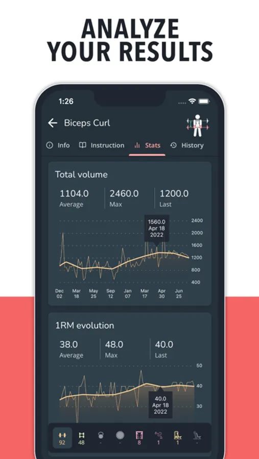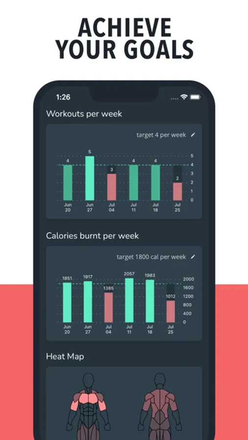 Track your body transformation and see actual results with the powerful body measurement tool. Focus on your weak points to build the body you've always dreamt of.