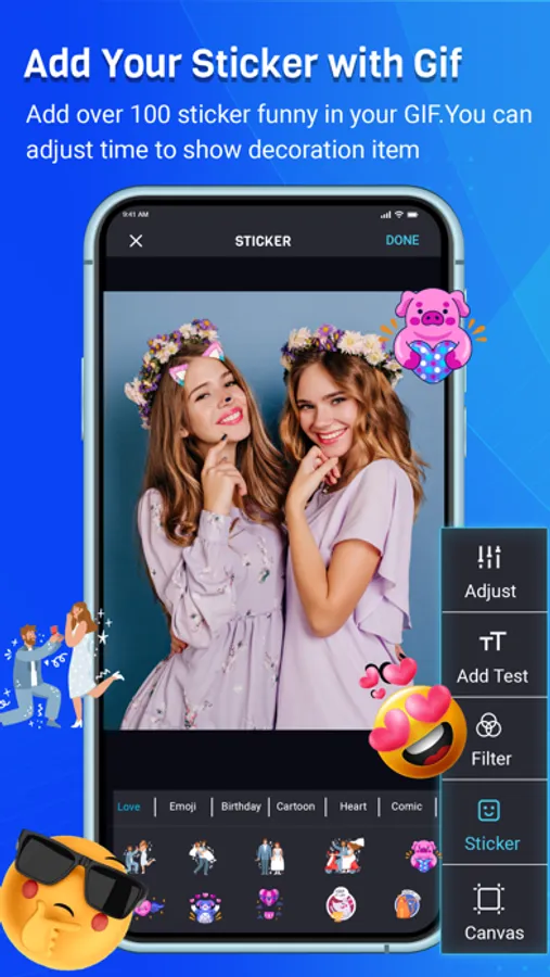 - Add funny stickers in your GIF
