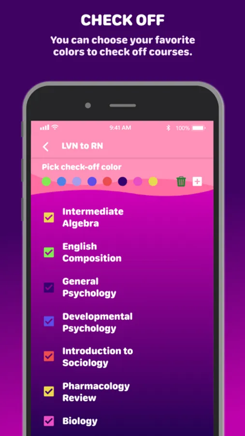 Using our customizable calendar, you can mark completed courses in your preferred color, add notes, and set up reminders for upcoming tests and other important dates. Scholarships are available.