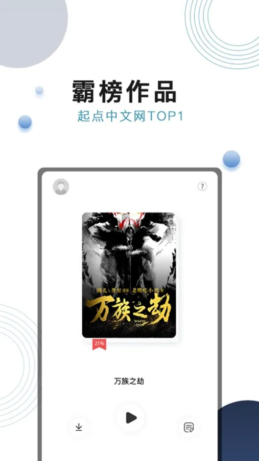万族之劫有声小说APP囊括万族之劫等众多精品有声小说系列,其中代表作:万族之劫 起点中文网TOP1霸榜作品,年度最火爆的有声小说,万族争锋我为先,苍天无劫我为劫,带你走进全新的热血异能世界!