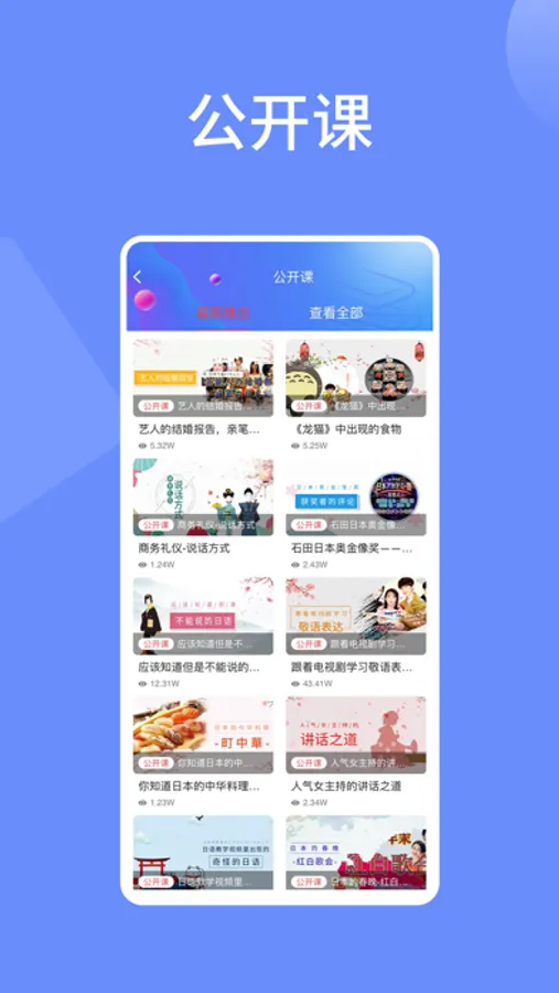 日语学习通是一款拥有海量全免日语公开课 五十音图 单词素材和强大的日语学习功能应用,各年级的学生党、职场人士、家有宝贝的父母都能在这里找到适合的课程,配合好用的学习功能,提升日语口语、听力水平。