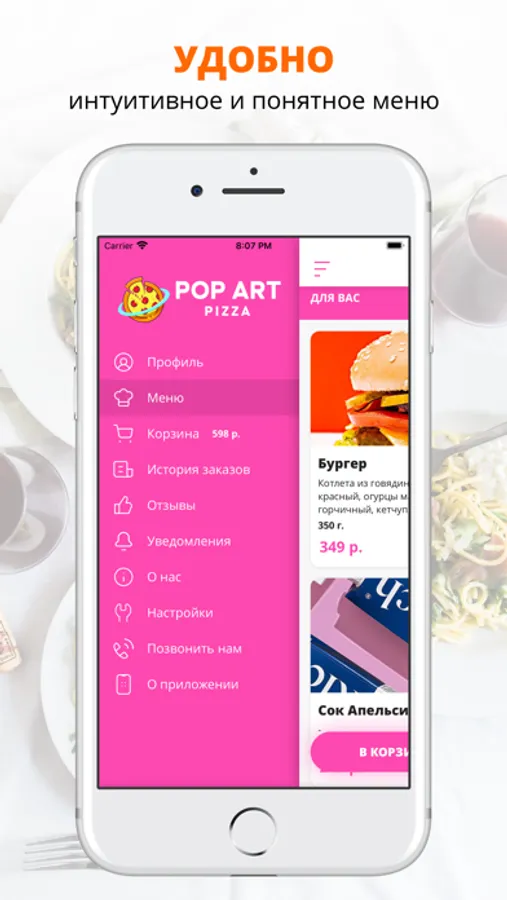 Воспользуйтесь удобным приложением для заказа еды «НPop Art Pizza».
