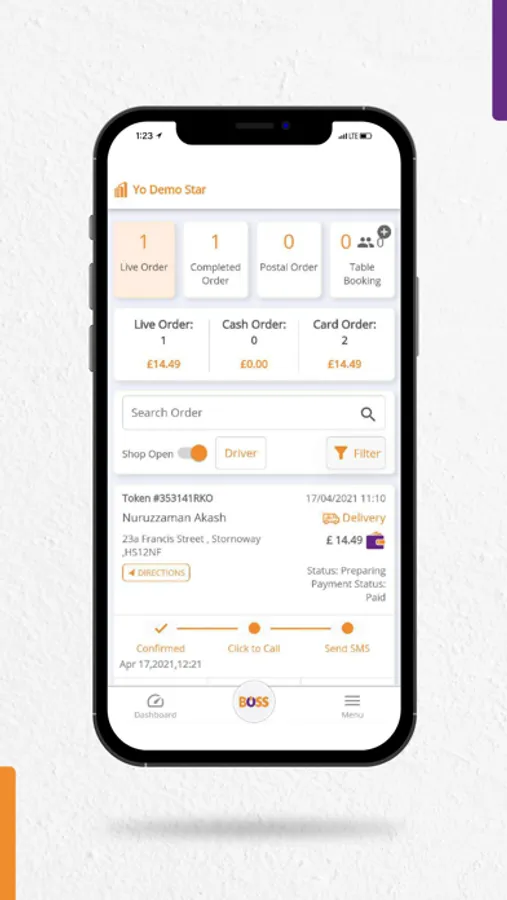 Boss app is for business owners only. This app is a dedicated business management tool which allows you to control many aspects of your online business. You can manage your restaurant's online presence, check order history, invoices and find loads more handy features.