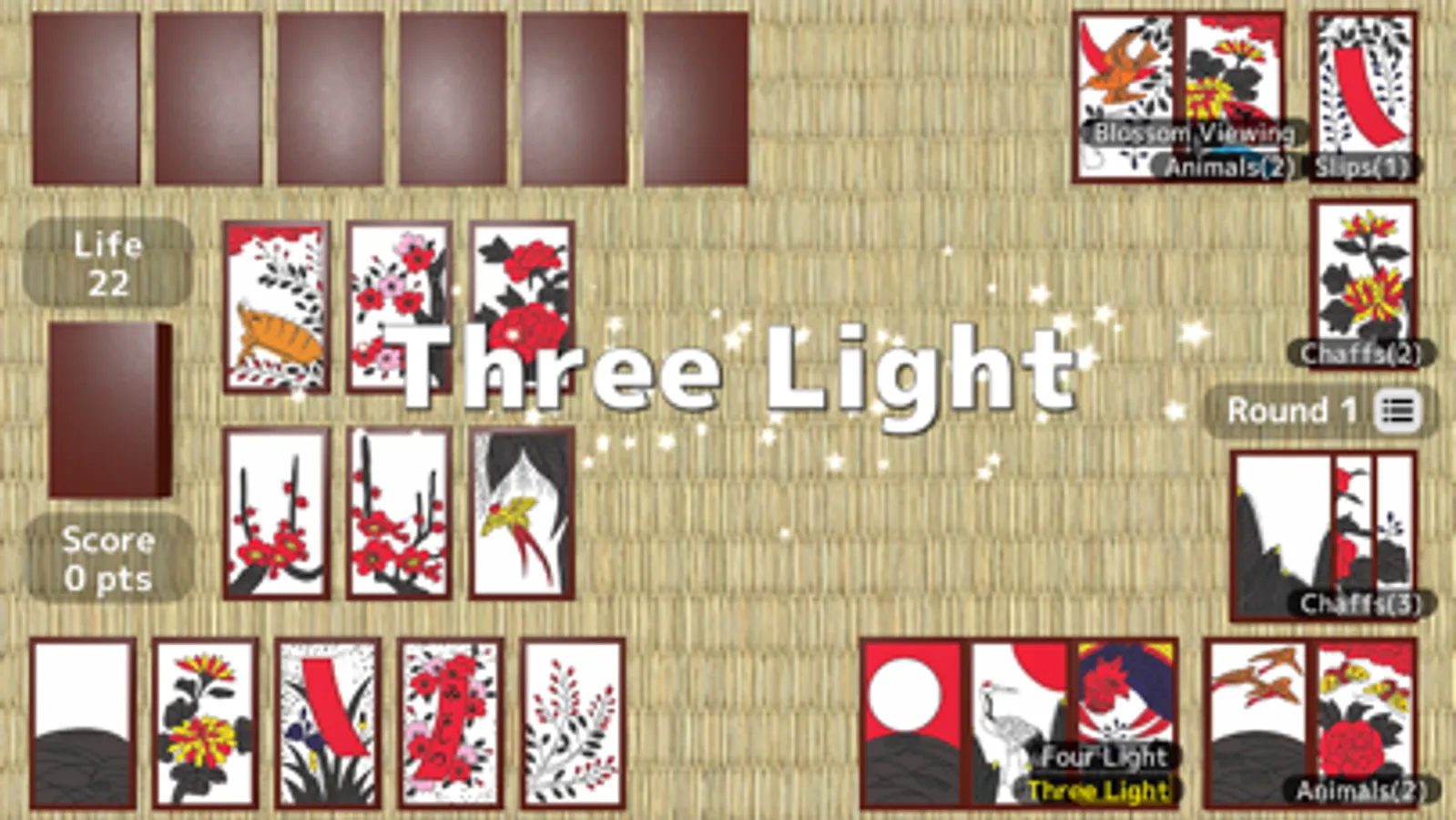 At the beginning of the game, you have 25 points, and every time you cut a card, you spend 1 LIFE. If you win a yaku, your LIFE is added to the number of sentences of that yaku.