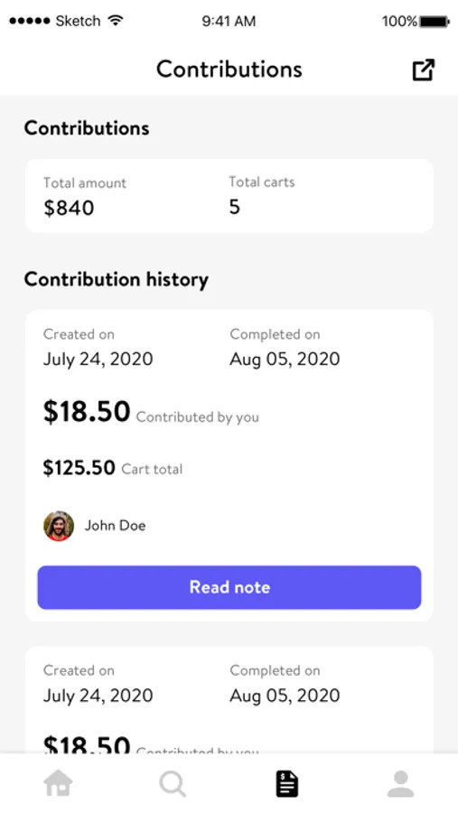 To register as a grocery contributor user of the app, fill in your name and contact information and then log in and review the list of recipients to choose who you would like to help on that day. You can securely contribute payment to buy their entire cart of groceries or just a few items in the cart.