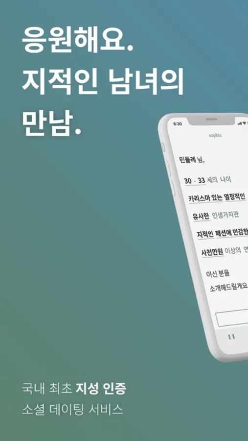 소피스는 정서적 풍요로움에 목마른 지적인 남녀를 위한 소셜 네트워킹 & 데이팅 서비스 어플입니다.