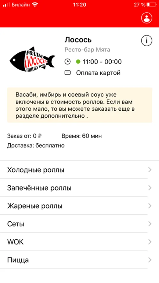 Мобильное приложение для заказа Суши -Пицца - WOK