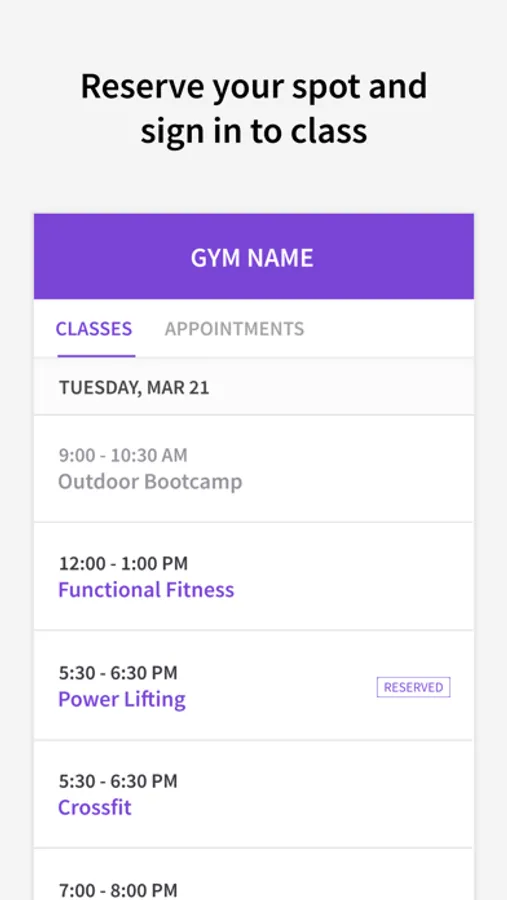· Class Scheduling: View, reserve, and sign into upcoming classes at your fitness facility.