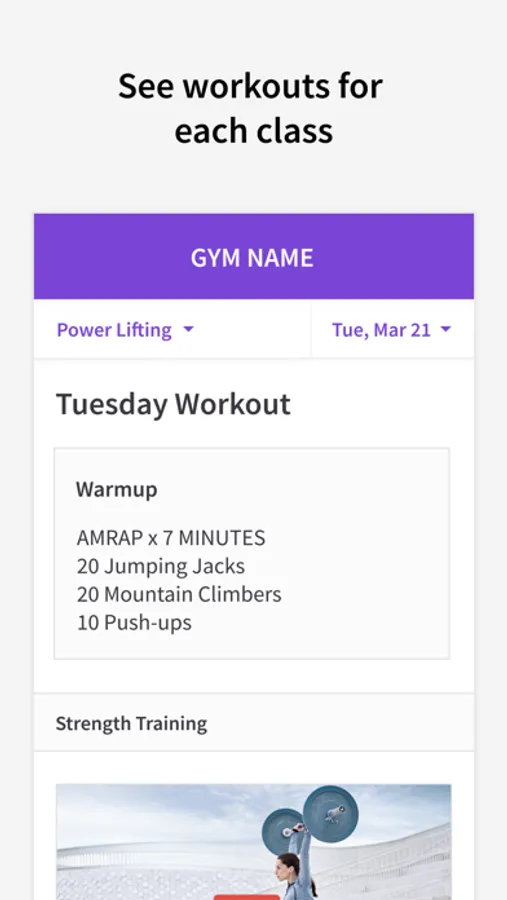 · Workout: Check out your class’ workout from anywhere and prepare to sweat.