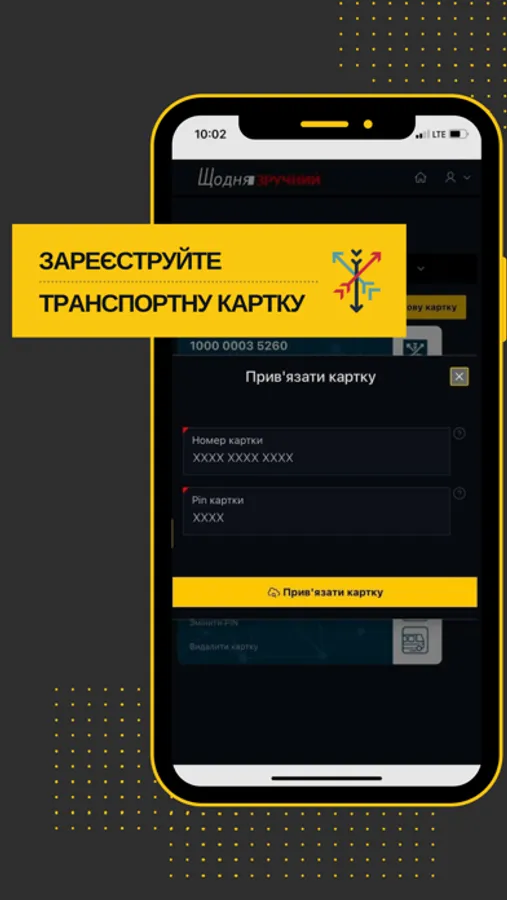 - прив'язати транспортну карту по її номеру та Pin коду (допускається прив'язка від однієї та більше транспортних карт);