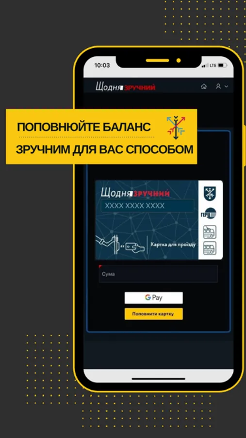 - поповнювати баланс як зареєстрованої, так і іншої транспортної карти по її номеру.