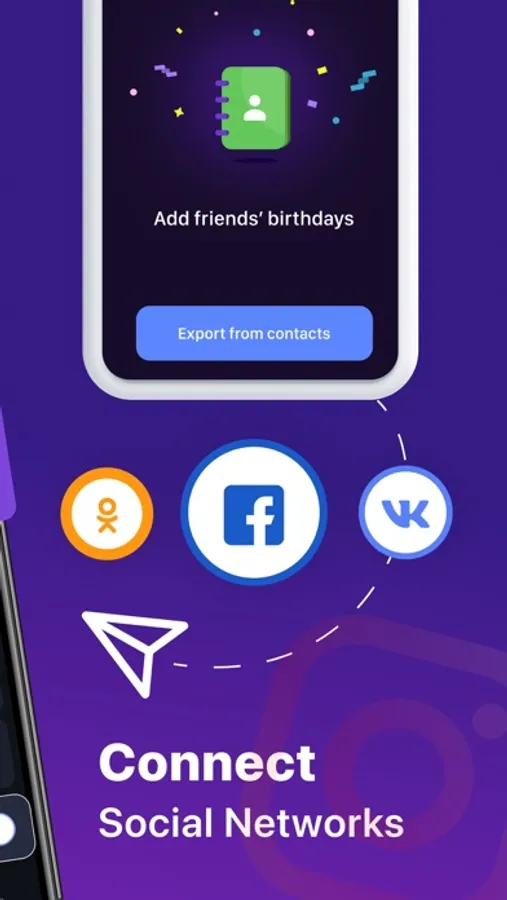 - Import contacts from social networks (Vk, Odnoklassniki);