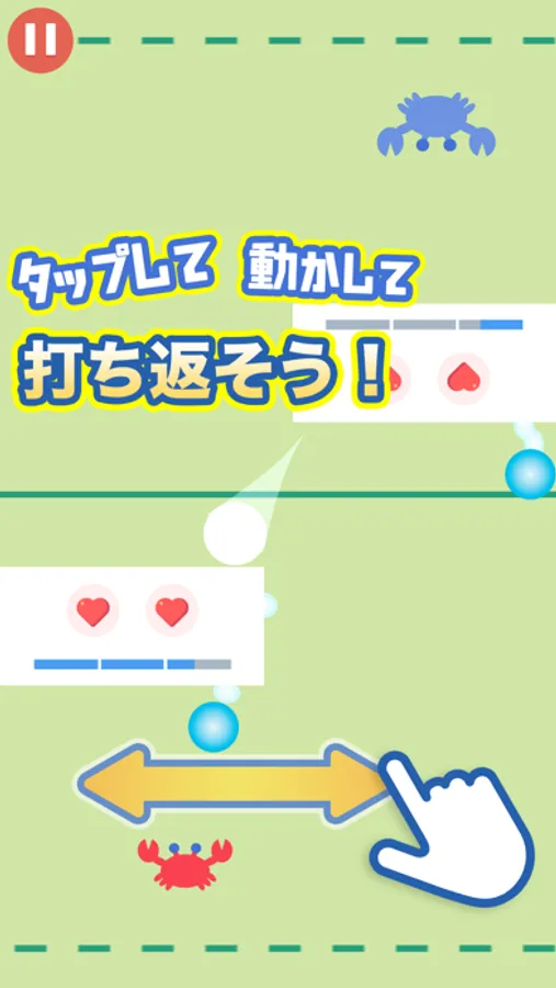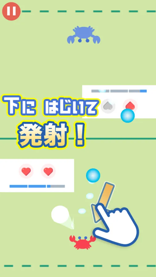 「カニホッケー」はボールやあわをゴールに向けて打つアクションゲームです。