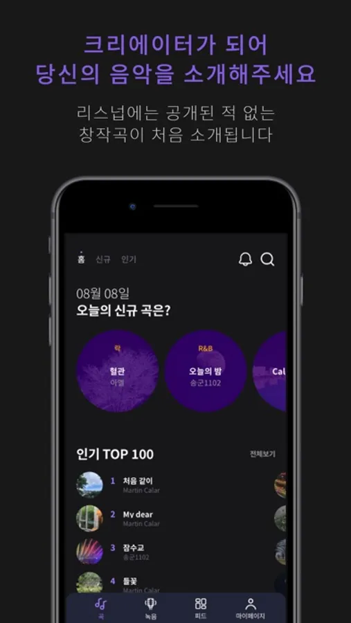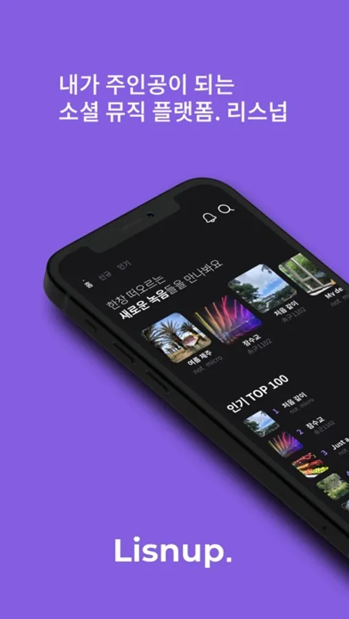 크리에이터가 공개한 창작곡에 나의 목소리를 녹음해 노래를 완성하고 팬들과 소통하는 소셜 뮤직 플랫폼. 리스넙 - LISNUP