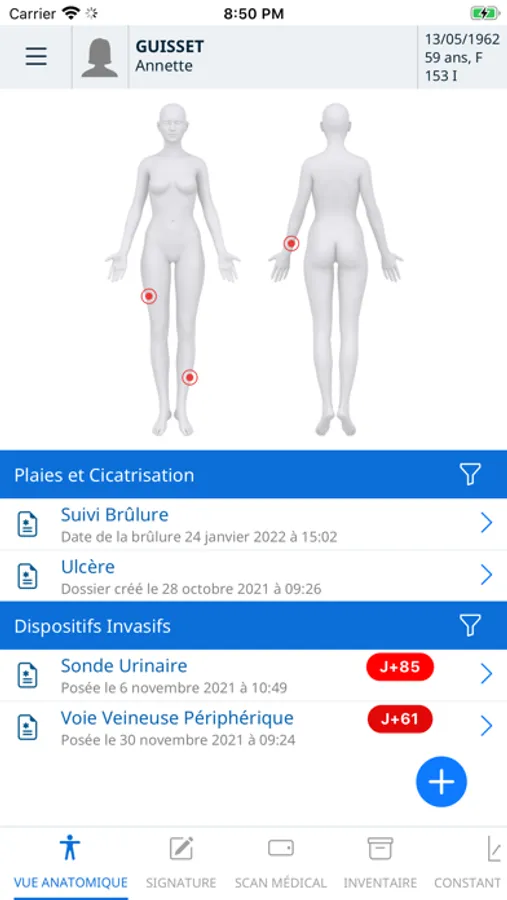 - gestion des photos médicales intégrées à la traçabilité de la prise en charge dans le DPI (suivi des plaies, dermato, vasculaire, brûlés, ...)