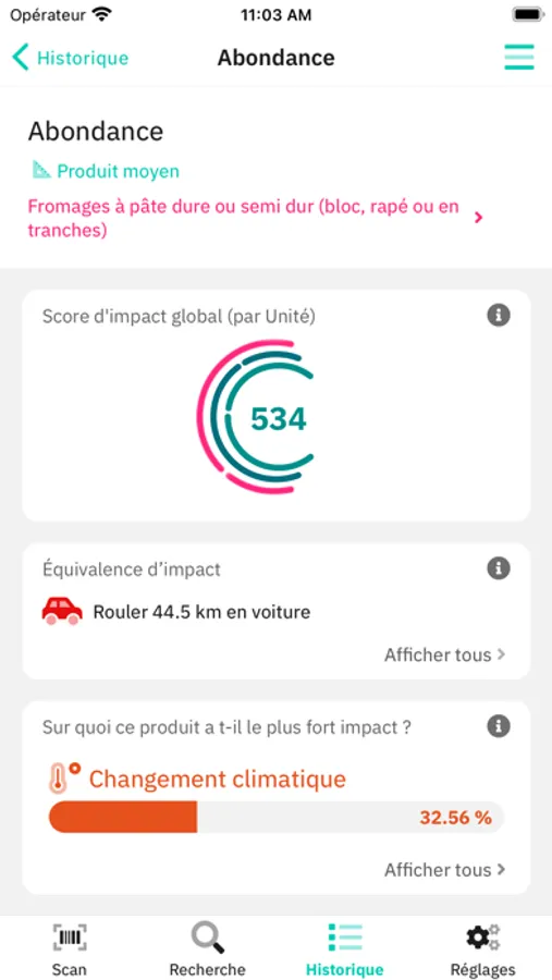 Glimpact Scan vous permet de mesurer l’impact environnemental global des produits alimentaires. Par un simple scan du code barre, Glimpact révèle le coût environnement global et détaillé de chacun d’eux. Vous pouvez ainsi faire vos choix en toute connaissance de cause.