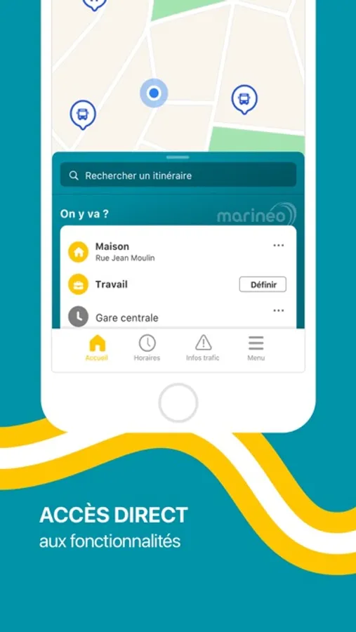 - Enregistrement de destinations favorites (travail, domicile, salle de sport…), stations et gares en 1 clic