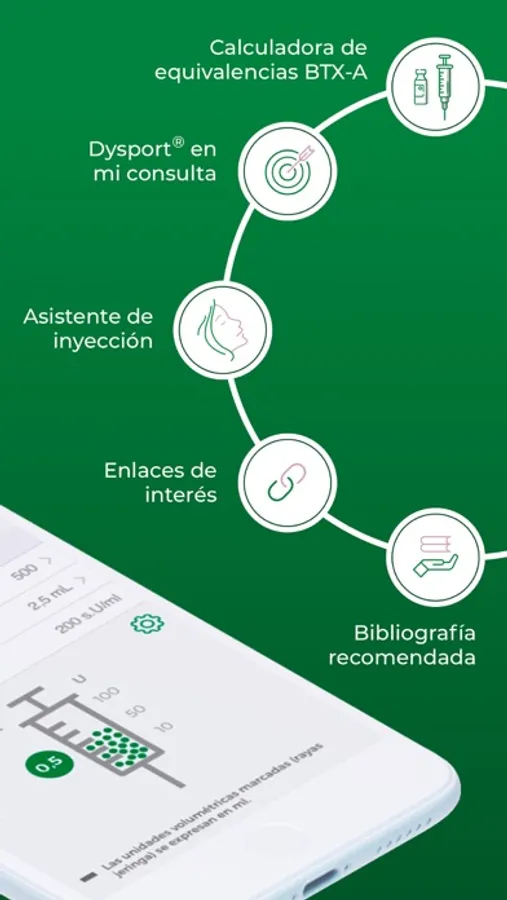 El contenido descrito en esta app no sustituye la información de un profesional de la salud especializado en la inyección de toxina botulínica. Consulte a su médico