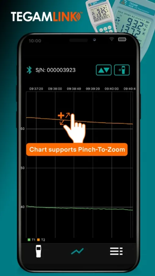 - Chart and stream real-time data from your TEGAM Data Thermometer;