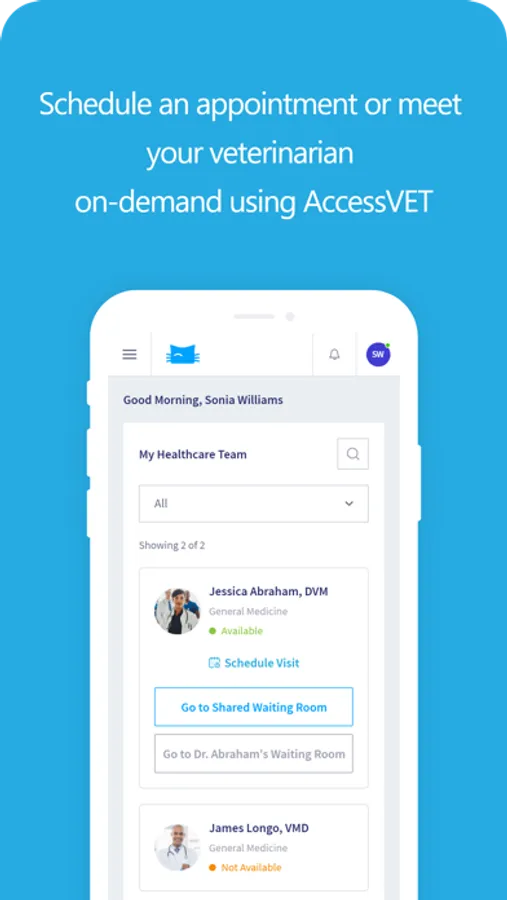 AccessVET provides virtual waiting rooms, online patient registrations, real-time telehealth scheduling, on-demand video consultations, etc.