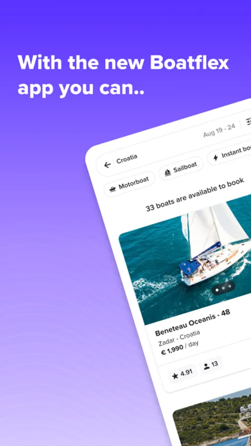 With the Boatflex app, you have access to fleets of professionally and privately owned rental boats all along the beautiful coasts of Europe.