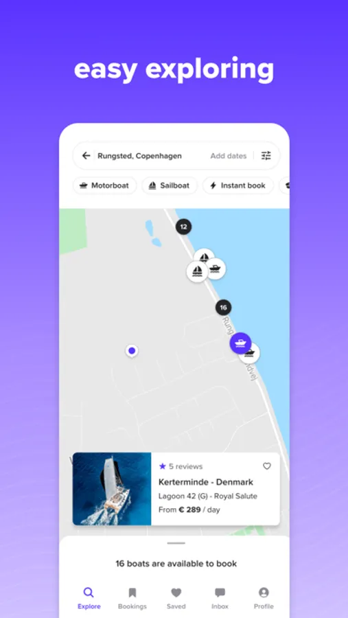 Dreaming of a calm trip with your family or partner, or a wild ride with lots of water sports together with friends or colleagues? In the Boatflex app, you can filter the boats not only based on your sailing destination but also according to boat type, size and not least the equipment on board. So if you’re looking for a fishing boat, we’ve got it. If you’re in search for a boat equipped for wakeboarding, we’ve got it. And if you’re looking for an impressive yacht for a big get-together, we’ve got it.