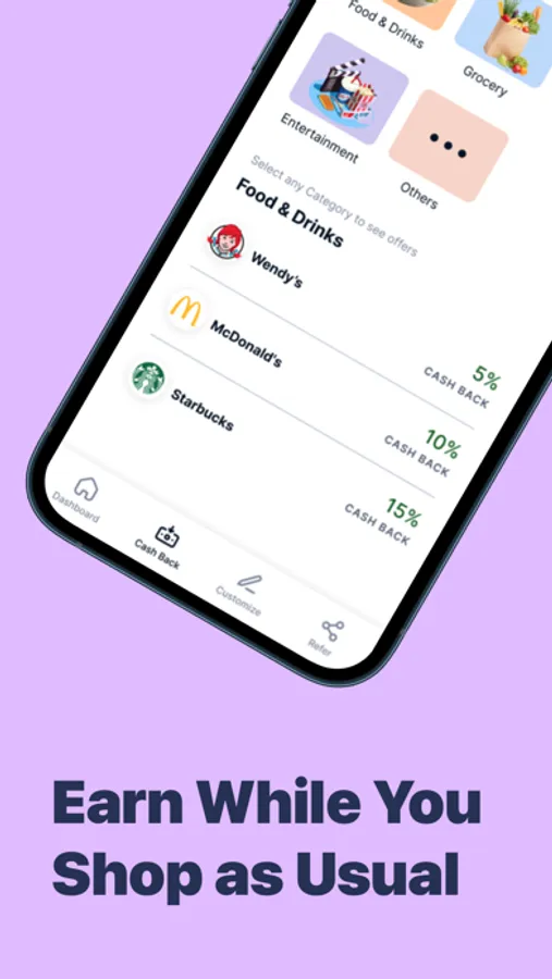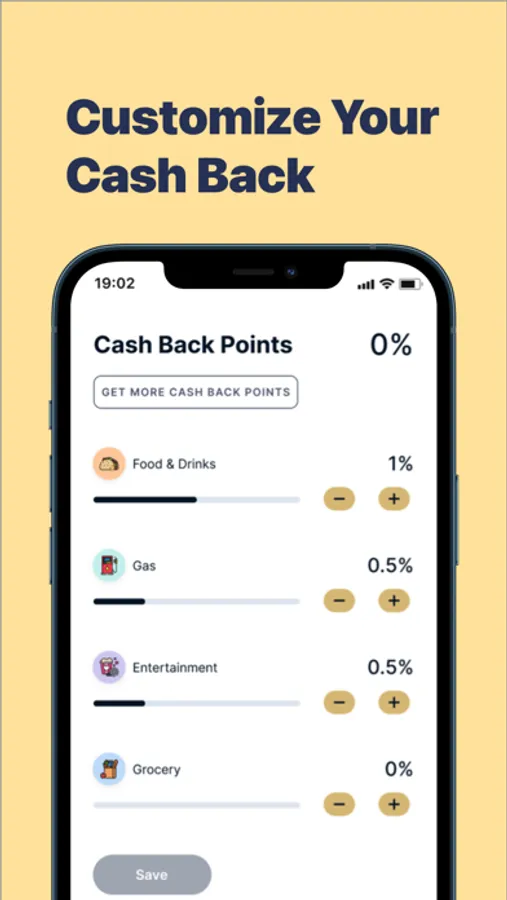 - Customizable cash back. Set your cash back rates and categories according to your preference to fit your lifestyle. You can change this anytime from the cash back settings.