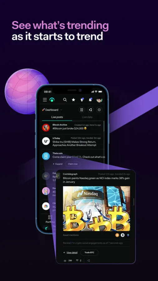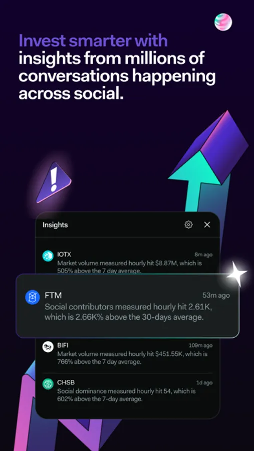 Get access to real-time advanced insights so you can discover new investing opportunities. See metrics fire, previous similar price movement, and viral content surrounding the insight.