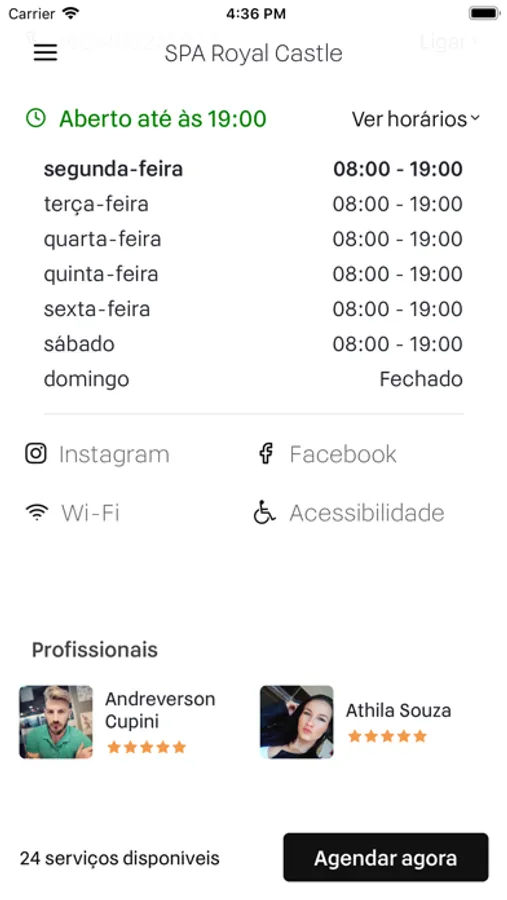 Com o App você pode acompanhar os horários disponíveis dos profissionais 7 dias por semana e 24 horas.