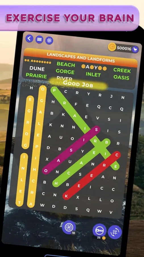 Is stress getting to your nerves? Do not let yourself get wound up in unnecessary stress and play this game with relaxing images. With more than 1000 levels, this app has nature images on every level. These nature wallpapers are designed to help you feel more relaxed and focus. The stress relief word search exercise will help you gain more clarity and be able to use your mental skills in a better way.