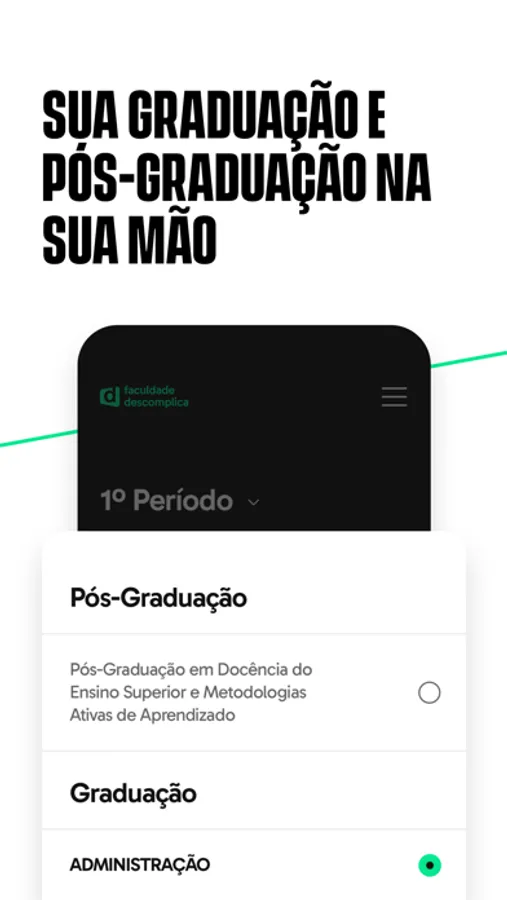 Com o aplicativo da Descomplica Faculdade Digital, você vai poder assistir às aulas dos seus cursos de Graduação ou Pós-Graduação quando quiser e de onde preferir. Olha só as principais funcionalidades: