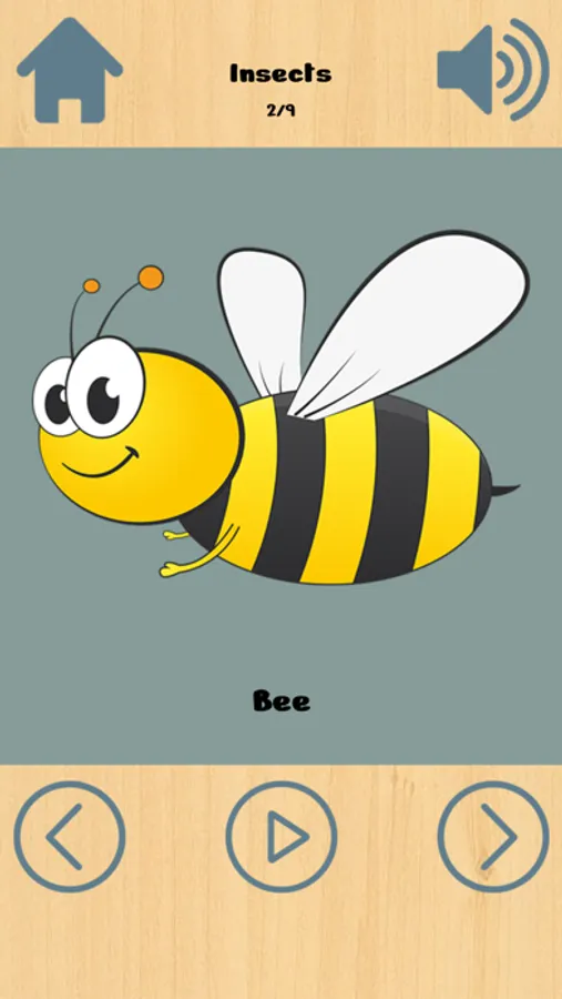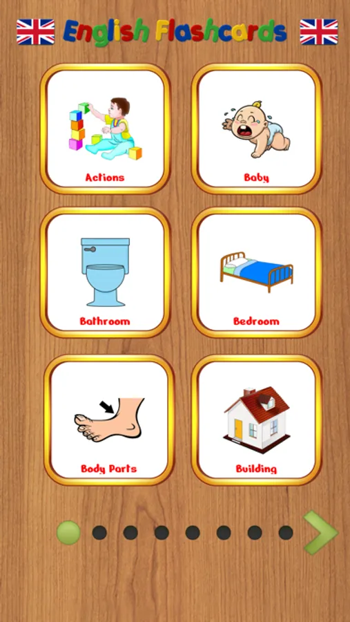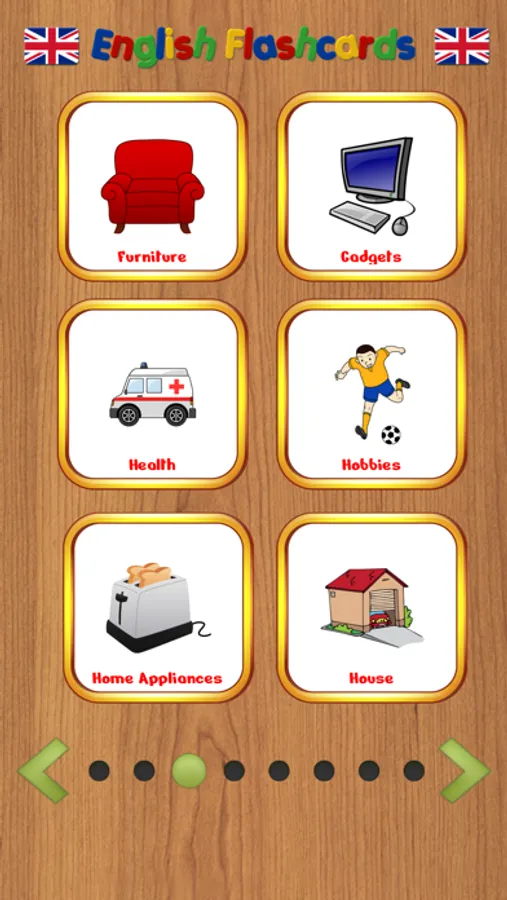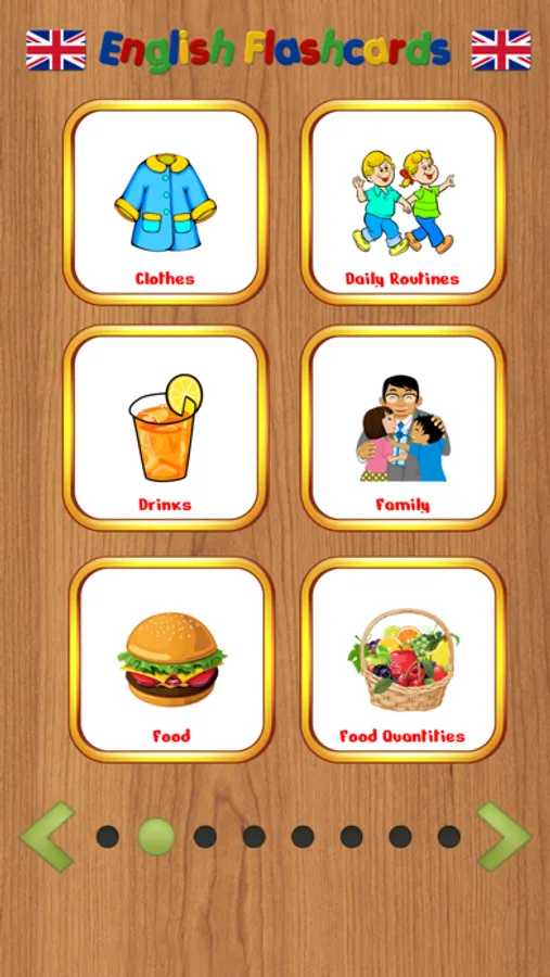 There are more than 40 different categories included like food, flowers and cloths. Each category has more than 10 pictures with sound and its spelling.