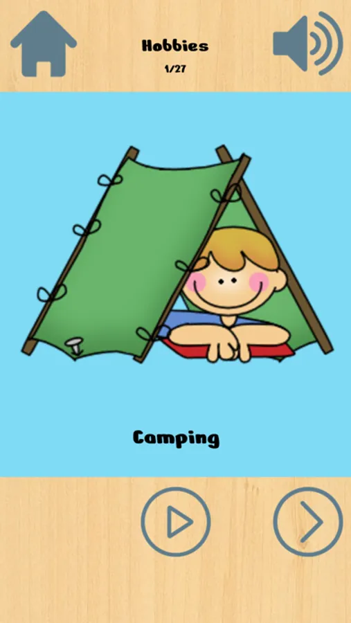 User can listen same word audio many times as they want by clicking on sound button. They can change the picture by next and previous buttons.