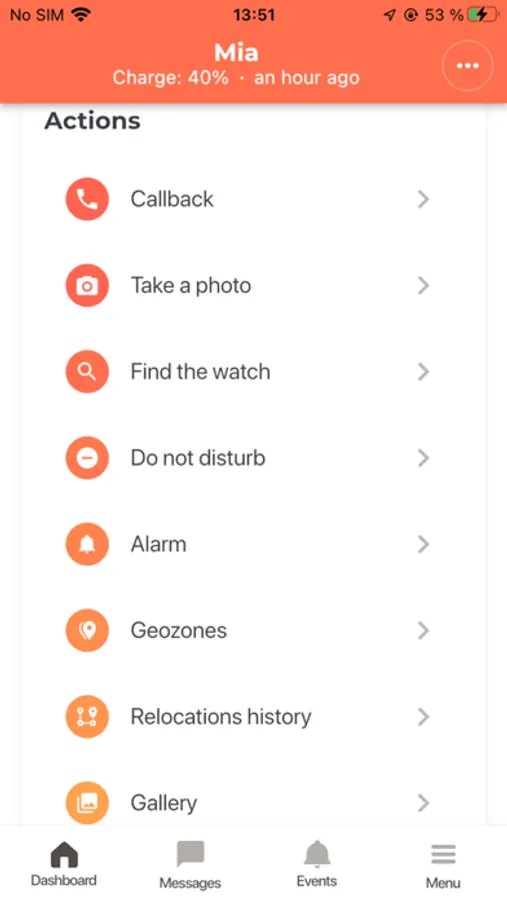 - Get notifications about SOS alarm, low battery, take-off sensor