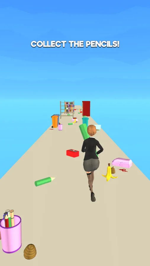 It is time for a new lesson. Overcome the obstacles you face in the school corridor carefully. Don't forget to collect pencils, you may need them!