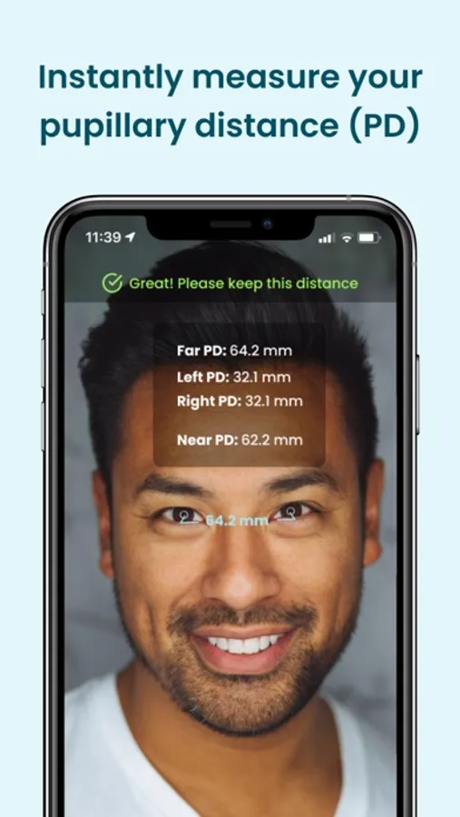Use Augmented Reality (AR) technology to instantly measure your pupillary distance, one of the numbers needed for ordering glasses. All you need to measure your pupillary distance is your phone! Disclaimer: Your phone must be iPhone X or newer and must support Face ID.