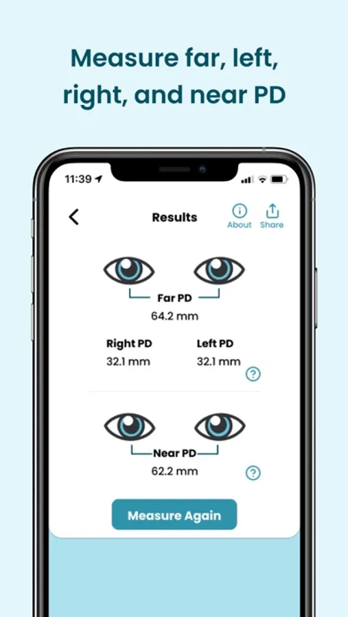 Measures your far pupillary distance, including your left and right pupillary distance, for distance viewing