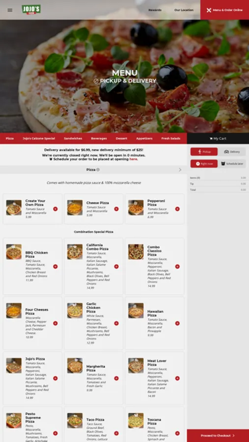 Online ordering for Jojo's Pizza in Sacramento, CA.