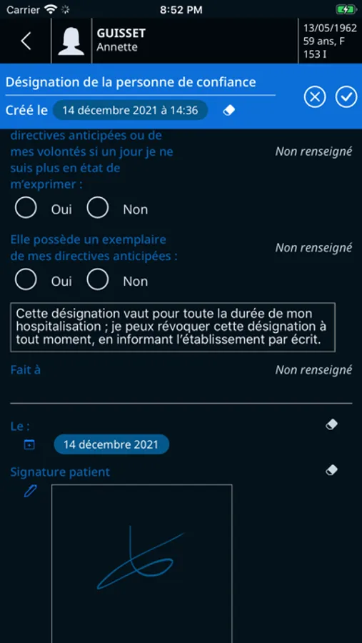 - recueillir la signature dématérialisée des consentements et tous types de documents médico-administratifs