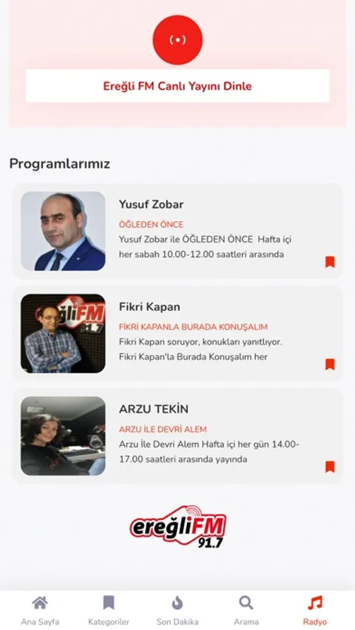 Ereğli FM size yeter, sloganıyla yeni yayın döneminde bölgemizde ses getirecek işlere imza atmayı amaçlayarak Sadece müzik yayınlarıyla değil haber, siyaset, spor Programları canlı yayınlar ve konuklarıyla sadece Müzik değil aynı zamanda haber kanalınızda olacak.