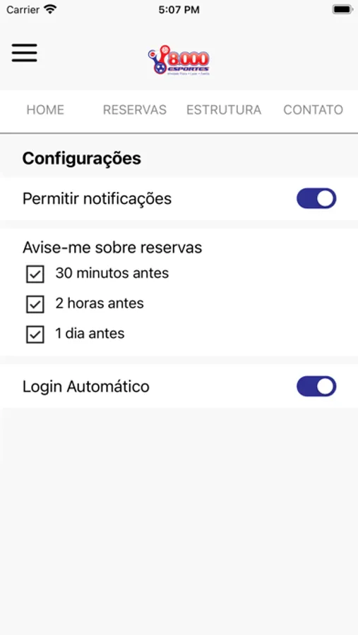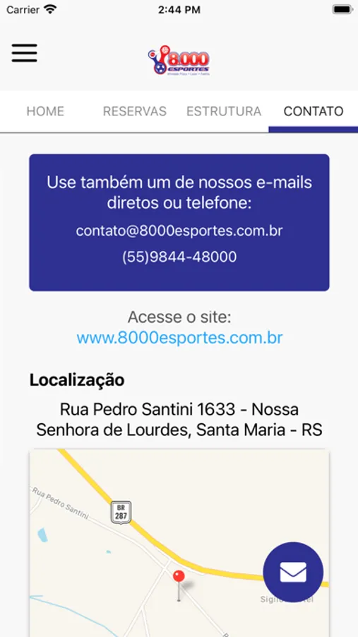 Confira pelo app nossas informações de estrutura, localização e contato com o centro esportivo.