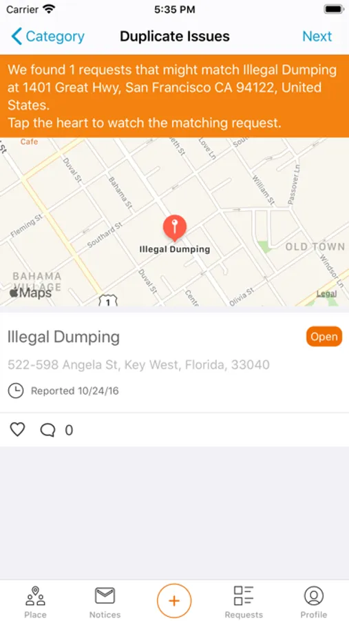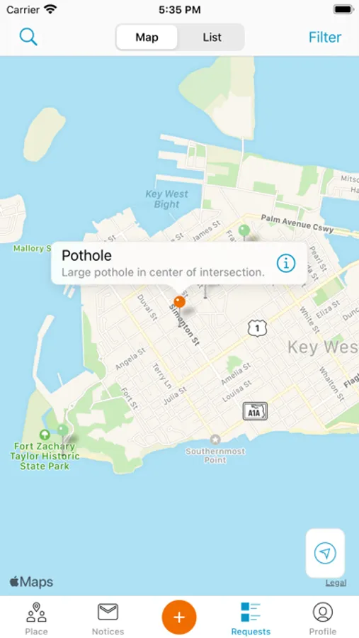 Key West Connect app is your resource to report issues in your neighborhood such as damaged street signs, damaged trees, graffiti, and other issues that need attention. The simple-to-use app uses GPS to recognize your location, gives you a menu of common conditions to select from, and allows you to upload pictures of the concern that will assist City staff in your municipal request. You may comment on your submission and you will be notified when the status of the issue is updated.